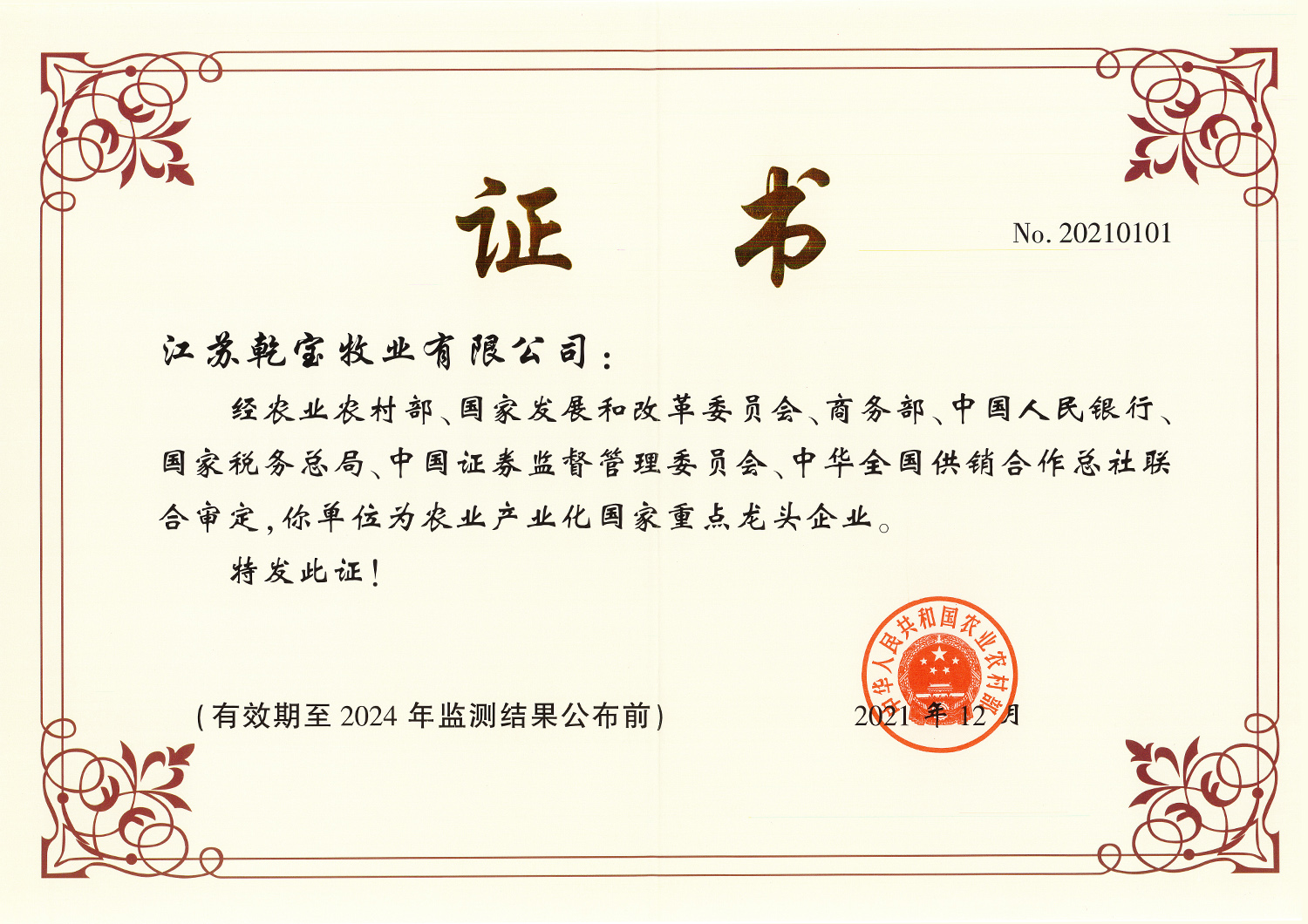 江蘇省農(nóng)業(yè)產(chǎn)業(yè)化龍頭企業(yè) -