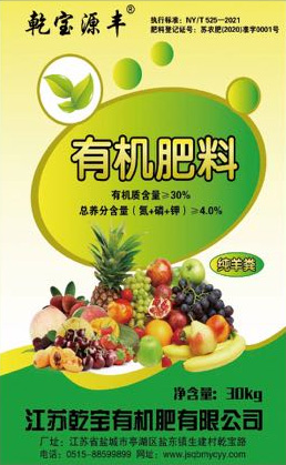 “乾寶源豐”有機肥,以羊糞為主要原料,菌菇渣、秸稈為輔料,經(jīng)高溫發(fā)酵加工而成,獲得《江蘇省肥料登記證》和國家農(nóng)業(yè)農(nóng)村部生物有機肥、復合微生物肥料登記證。是水果、蔬菜、花卉及有機農(nóng)產(chǎn)品、綠色食品理想的肥料。江蘇乾寶有機肥有限公司被評為“江蘇省十大有機肥標桿企業(yè)”。